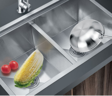 Sink singoli e compattiI sistemi di riempimento sono disponibili da 250 a 810 mm di larghezza.Variante con tavola di drenaggioIl lavaggio a mano è particolarmente adatto se occasionalmente si lava a mano o se si vuole usare la superficie per preparare il cibo.multi-taskingAmera' illavandini doppi: mentre si lavano le verdure nel vasino piccolo (larghezza 180 mm), si riempie anche la pentola designata nel vasino grande (larghezza 450 mm).Se dovete regolarmente maneggiare contenitori o piatti da forno di grandi dimensioni, la variante con due grandi vasche sarebbe la scelta ideale (con una larghezza di 430 mm ciascuna).